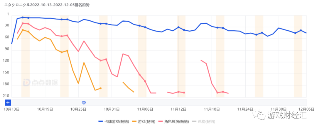 图:《艾塔纪元》在日本iOS游戏畅销榜排名趋势;来源:点点数据