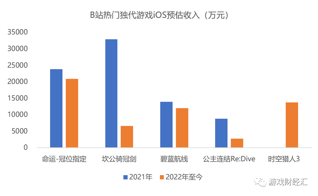 也就是说,B站22年的独代游戏中依然没有出现能替代《命运-冠位指定》、《碧蓝航线》的爆款。随着《命运-冠位指定》、《碧蓝航线》两款王牌产品流水下滑,B站需要新的增长接力棒。