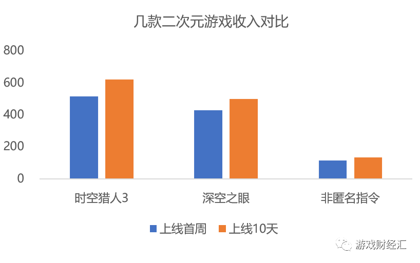 若与年内上线的其他二次元游戏相比,《非匿名指令》表现非常一般,上线首周收入仅相当于《时空猎人3》、《深空之眼》的2成左右。公开数据显示,《时空猎人3》首周流水过亿。