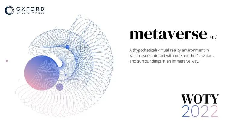 牛津英语词典的制作者表示直到去年才在专业语境中使用的元宇宙(metaverse)位列第二,使用量比前一年增加了近四倍。