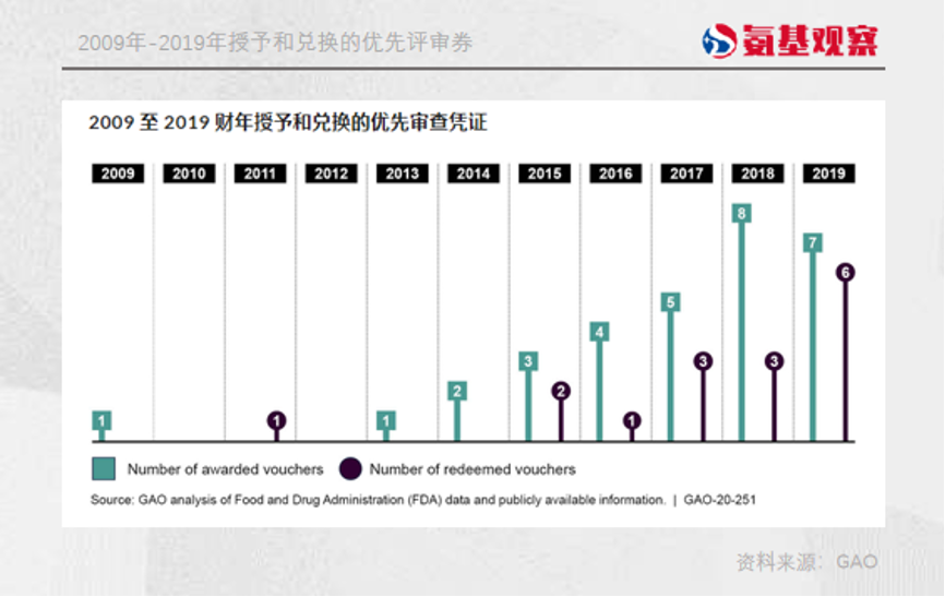 在批准相关罕见病创新药的同时,FDA可能授予开发者一张“优先审评凭券”作为奖励。开发者可将该券用于它药物的审评,以缩短上市时间。