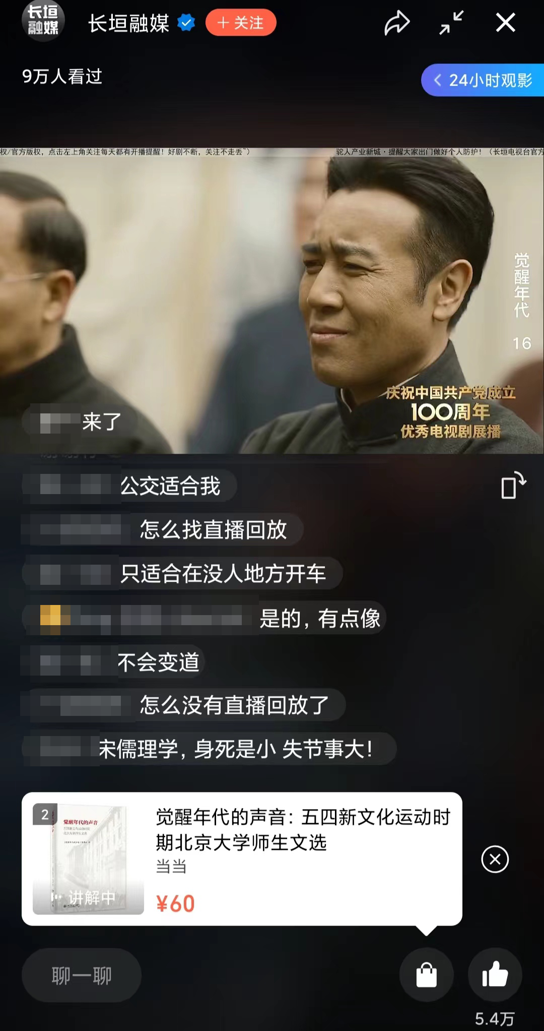 视频号影视剧直播,多为区域电视台的机构账号,影视剧类型比较符合视频号用户画像,影片大多是抗战时期的经典老片,也有少量近两年的热播剧,像是《觉醒年代》《人世间》《琅琊榜》等等。同一时间点,平台可能有几十或上百个直播间在同时进行影视剧直播。