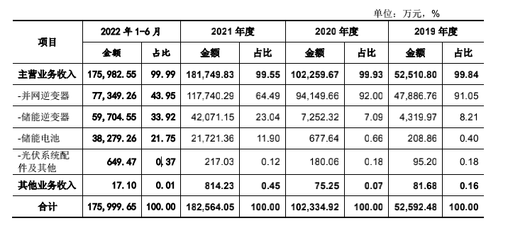 从收入构成来看,并网逆变器是首航新能最主要的收入来看,2022年上半年,并网逆变器收入7.73亿,收入占比44%。