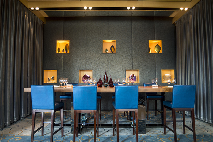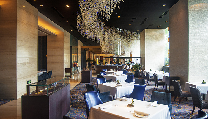 “Azur聚”的室内设计与北京香格里拉饭店的端庄典雅风格保持一致,主视觉以蓝色贯穿,这也符合了法文名 Azur 的意思:珍贵的蓝色石头。