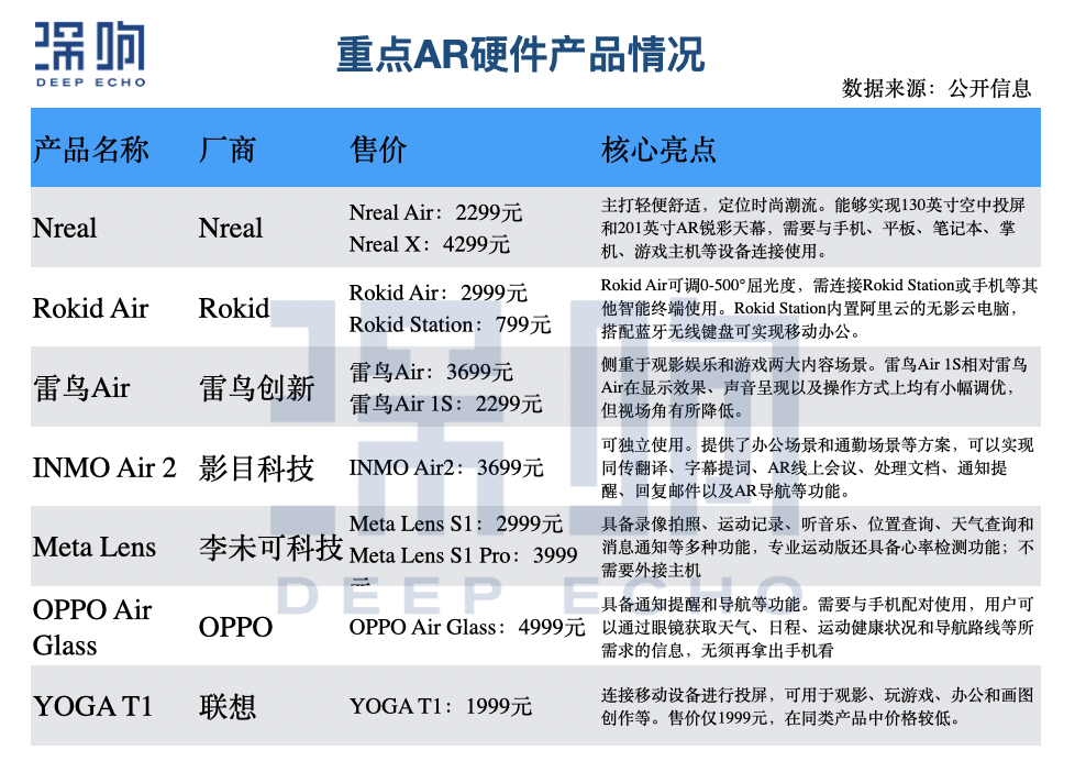 在苹果还没出牌之前,已经有很多硬件玩家拿出了自己的作品。今年,仅中国厂商发布的新品AR设备就已超过10款。