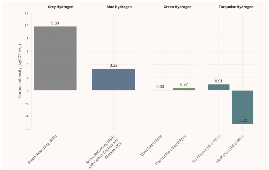 - 相比之下,占全球氢产量95%的灰氢,其生产过程碳排放量为9.89 kg CO2e/kg,比蓝绿氢高了将近十倍!