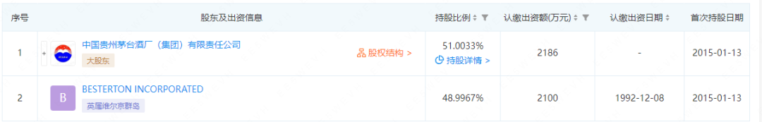 据企查查显示,珠海经济特区龙狮瓶盖有限公司(以下简称“龙狮瓶盖”)成立于1992年,由贵州茅台和新加坡BESTERTON INCORPORATED合资创立,是一家集瓶盖自主设计研发、专业生产、销售于一体的中外合资企业。值得关注的是,贵州茅台在这家公司占股约51%,为公司的大股东。