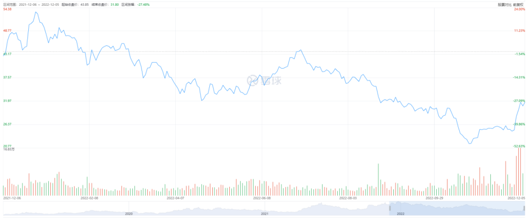 而在这种质疑下,也导致华致酒行的股价从今年最高点时的54.38元/股,暴跌到今年的最低点21.59元/股,股价几乎腰斩。