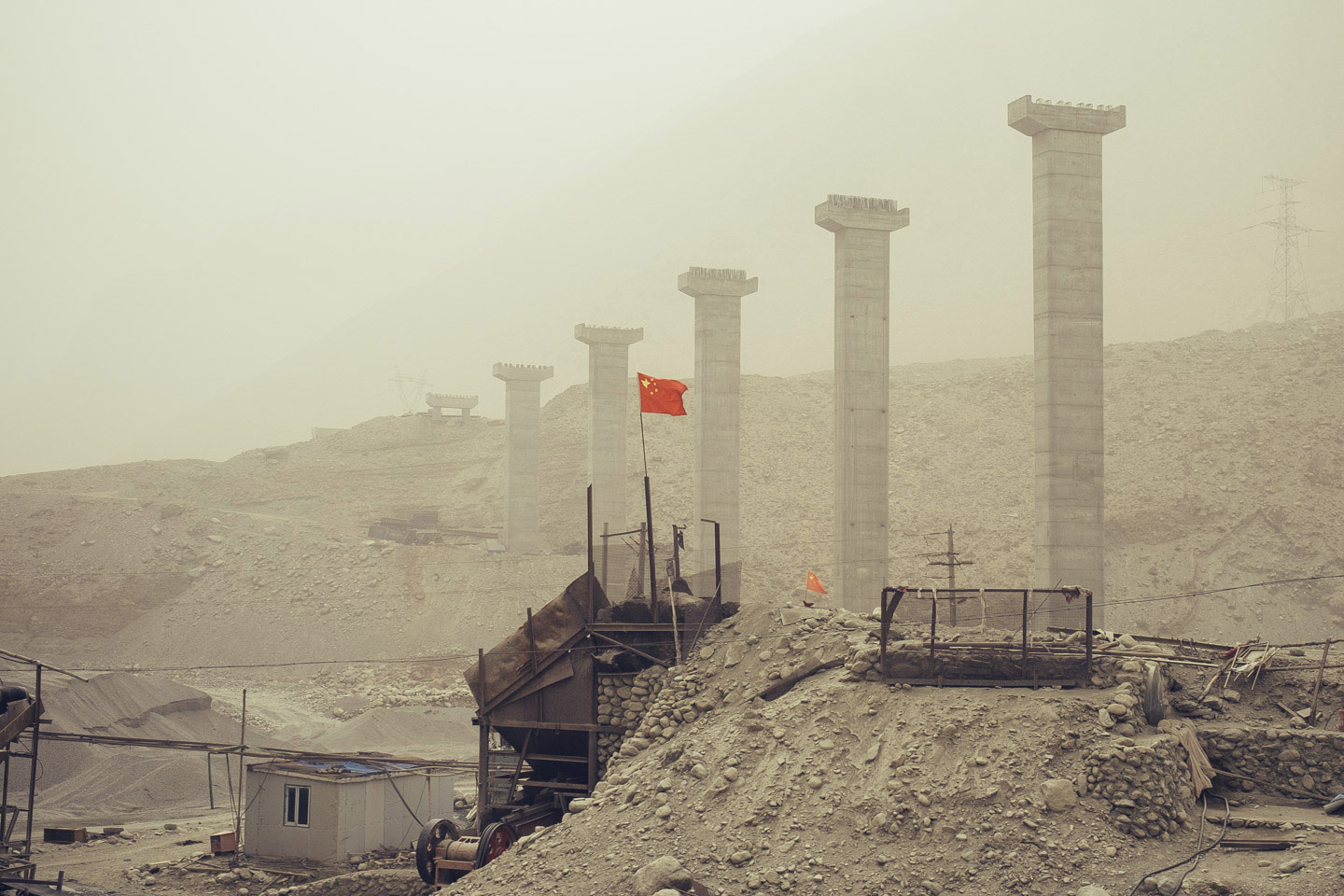 G314国道施工现场,自2010年中央决定设立喀什经济特区,政府便开始重修这条通往巴基斯坦边境的公路。克孜勒苏,新疆,2015