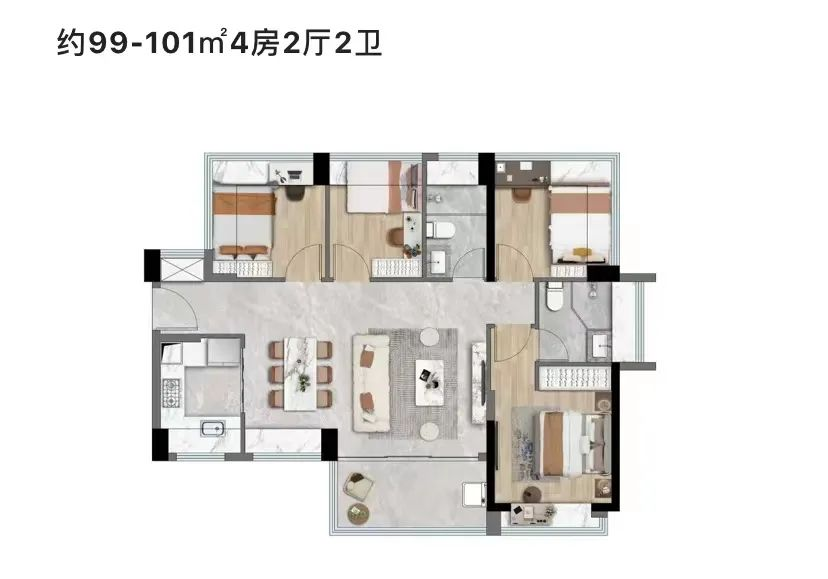 户型为建面约89-109㎡的3-4房,预计带精装交付。