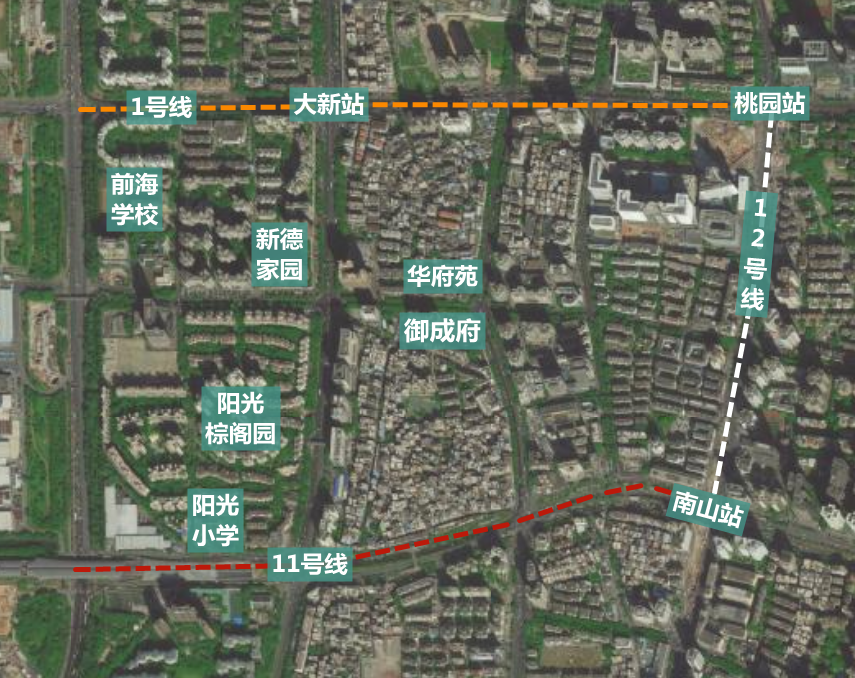 交通:与11号线南山站和1号线大新站,步行距离分别是700米和600米左右。