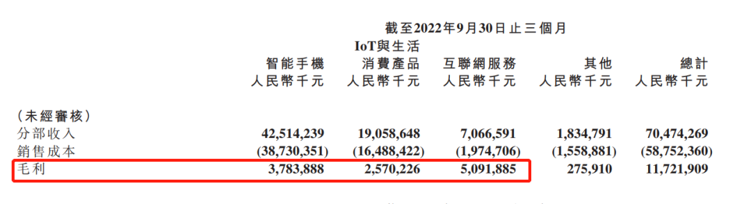 这块业务也没有明显下滑:第三季度,在智能手机和IoT与生活消费产品业务则分别下降11.1%和9.0%的情况下,互联网服务收入同比仅下降3.7%,几乎是小米各项指标里唯一一个超预期的。