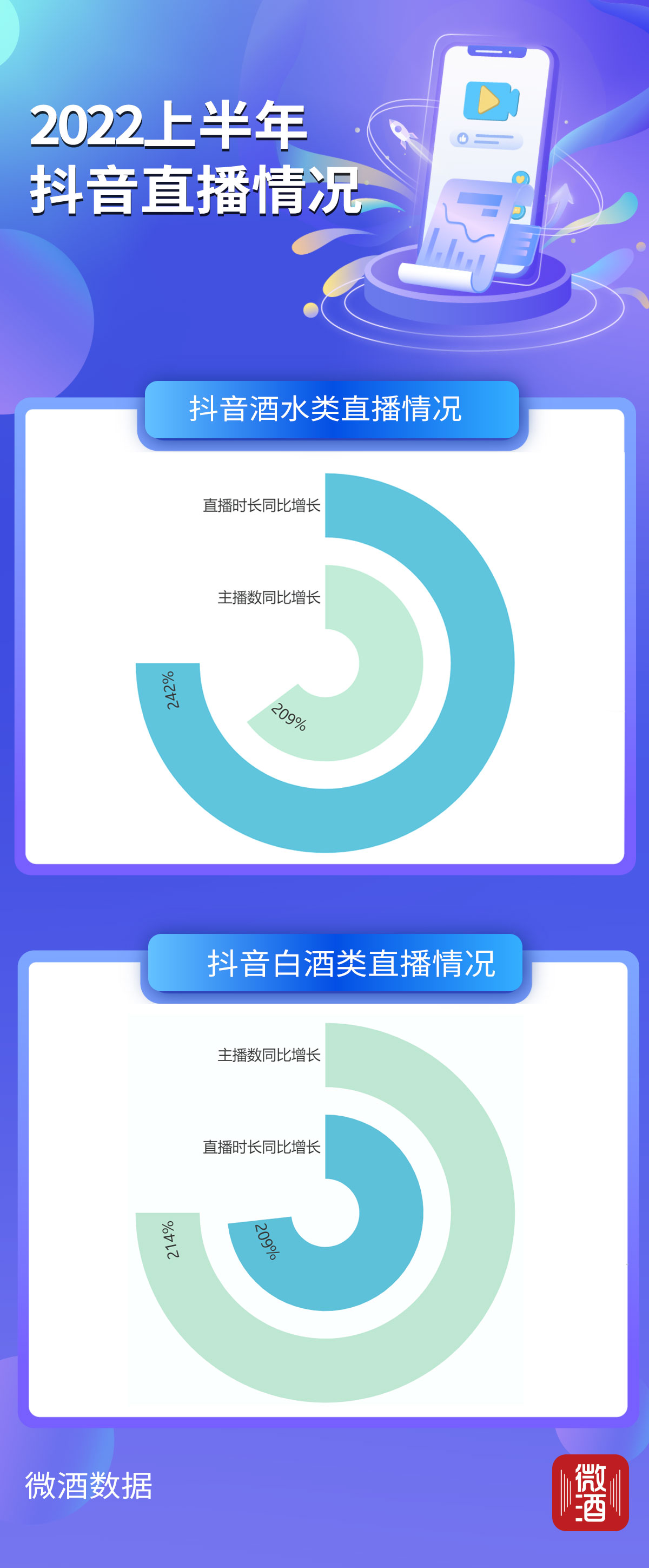 此外,“巨量算数”近期发布的《2022白酒行业数字营销白皮书》(以下简称《白皮书》)也披露,今年上半年,抖音酒水类主播数同比增长209%;整体直播时长同比增长242%。聚焦到白酒商家,白酒主播数及直播时长今年上半年分别同比增长214%、209%,均双倍增长。