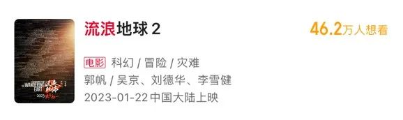 目前,《流浪地球2》的猫眼想看人数已经突破46万。