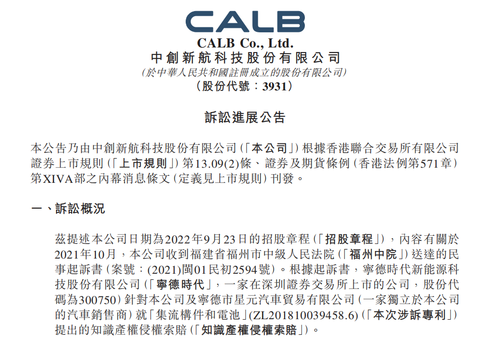 2021年7月到9月间,宁德时代先后就“防爆装置、集流构件和电池、锂离子电池、正极极片及电池、动力电池顶盖结构及动力电池”等专利侵权问题起诉中创新航。