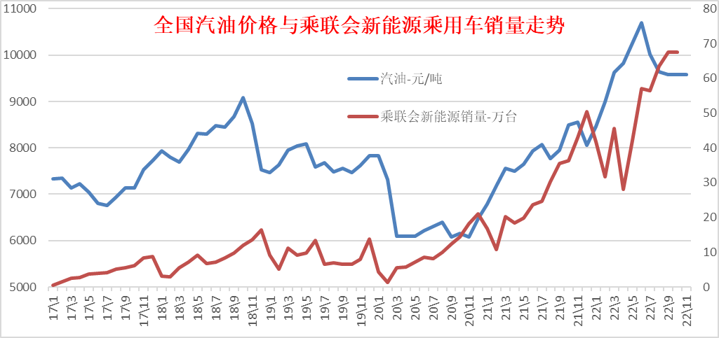5、 成品油价与新能源销量强相关
