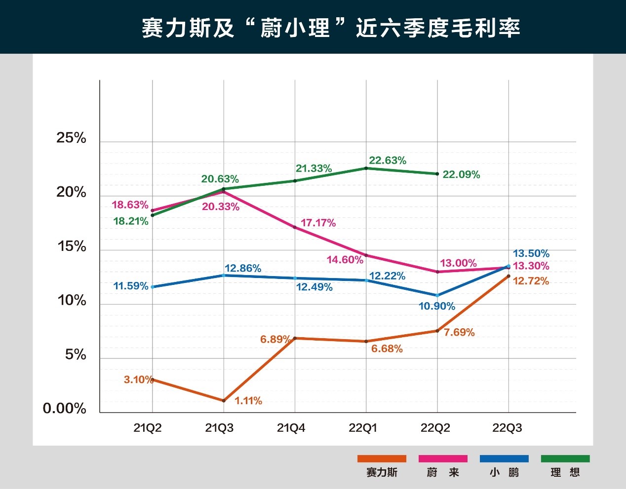 同时,在衡量企业盈利能力的关键指标毛利率上,赛力斯也有明显提升,从今年一季度的6.68%提升至三季度的12.72%。