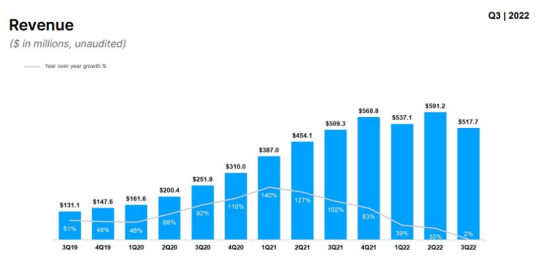 首先在营收上,三季度营收同比增长2%至5.177亿美元。虽然也在增长,但去年同期营收涨幅为102%,今年的增速明显下降。