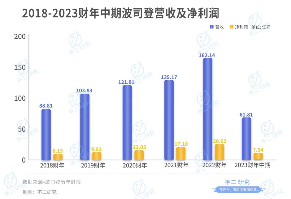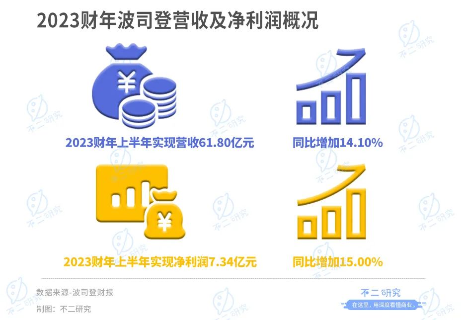 据波司登2023财年中期业绩报告显示,其2023财年上半年实现营收61.80亿元,同比增长14.10%,实现净利润7.34亿元,同比增长15.00%。营收和净利润均创历史新高。