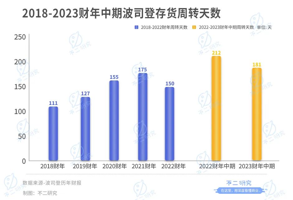 对于2023财年上半年181天的存货周转天数,波司登解释为:库存周转天数的下降主要是集团在坚持维持较低首次订单比例;同时,持续坚持拉式补货调节机制,有效推进全渠道商品一体化运营管理,有效优化了期初和期末的库存水平。