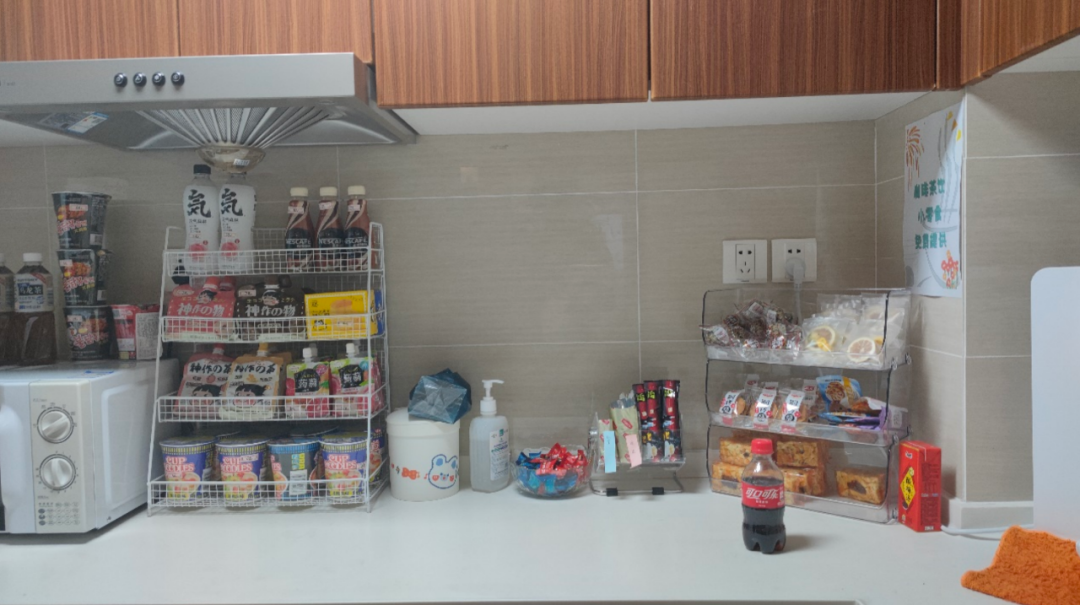 等用户到达自习室,张悦还会贴心地告诉对方,前台有可以自助使用的文具、静音键盘、打印机,还提供免费的茶水休息间以及不限量享用的咖啡、茶水和小零食。