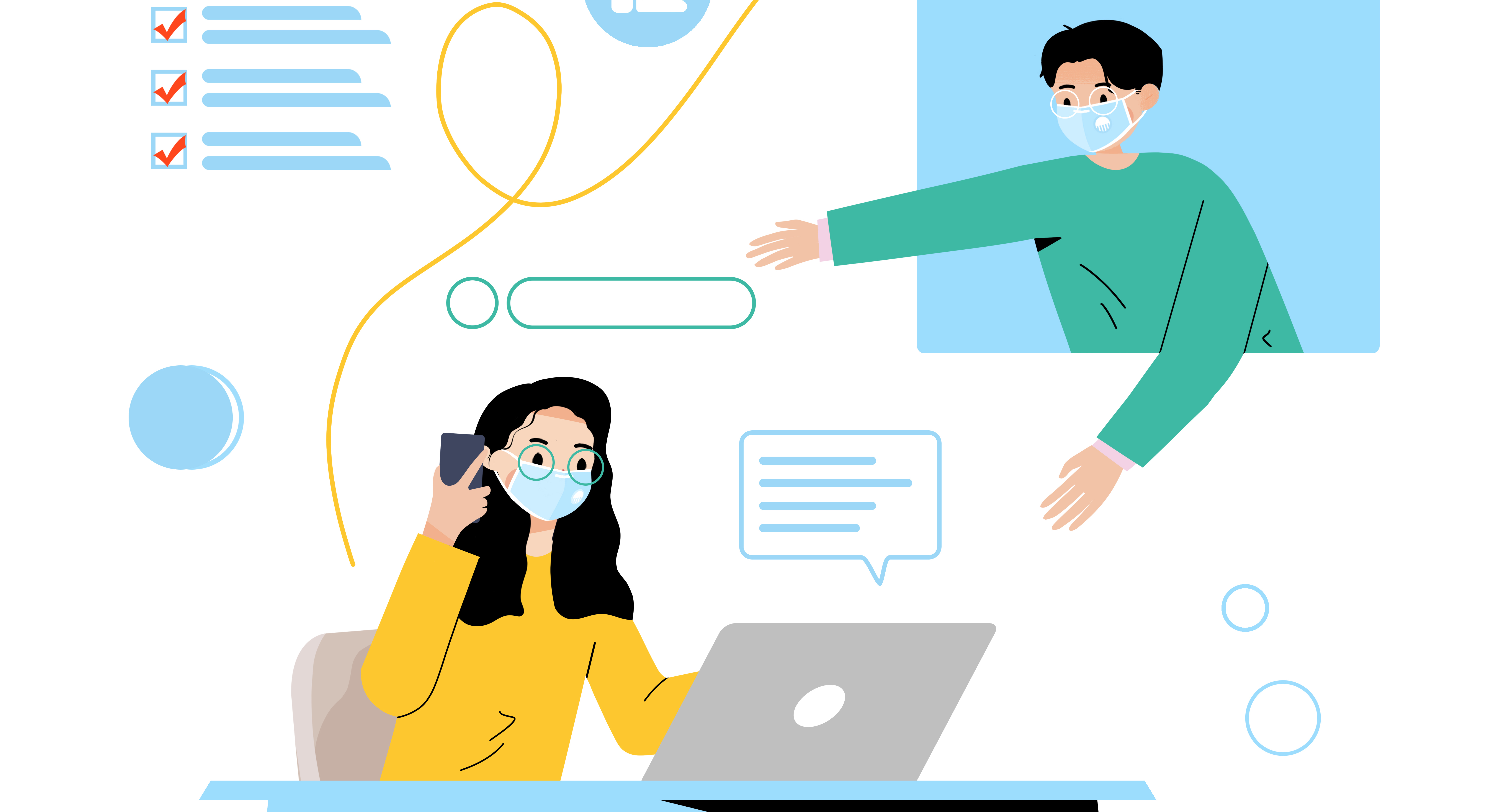 二、在相对独立的区域放置桌凳,作为非接触式传递物品的交接处。