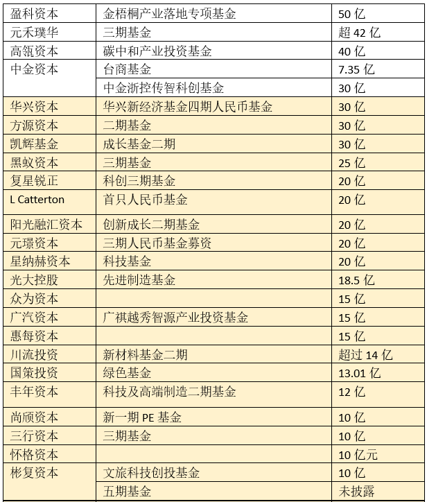 今年以来,包括红杉、高瓴、深创投、中金资本、达晨、启明创投、凯辉基金、蓝驰创投、黑蚁资本、盈科资本、丰年资本、尚颀资本、众为资本等纷纷实现募资,新基金资金陆续到位。