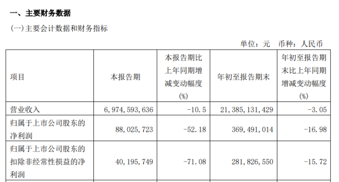 单看第三季度,光明乳业营业收入约69.75亿元,同比下降10.5%;归属于上市公司股东的净利润约为8802.57万元,同比降幅达52.18%。