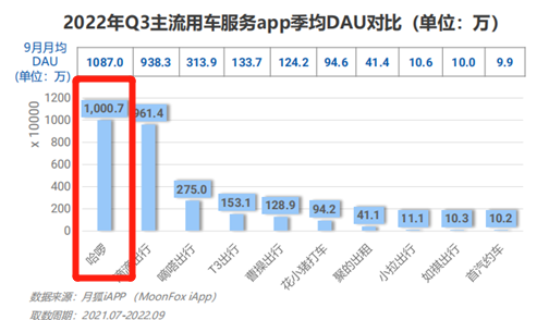 目前,哈啰的注册用户已经突破5.5亿。上个月发布的《2022年Q3移动互联网行业数据研究报告》显示,哈啰App活跃用户规模跃升至出行行业首位,其三季度App季均日活跃用户数量突破千万,达到1000.7万。