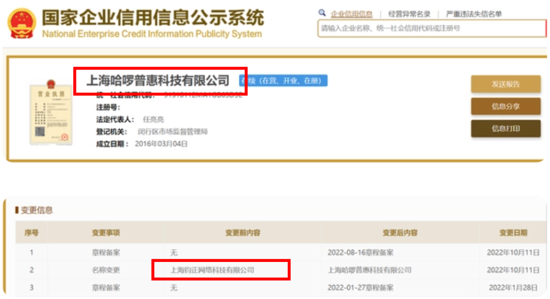 而升级还没有停止,今年10月,据企查查APP显示,哈啰出行主体公司上海钧正网络科技有限公司,将企业名称变更为上海哈啰普惠科技有限公司。