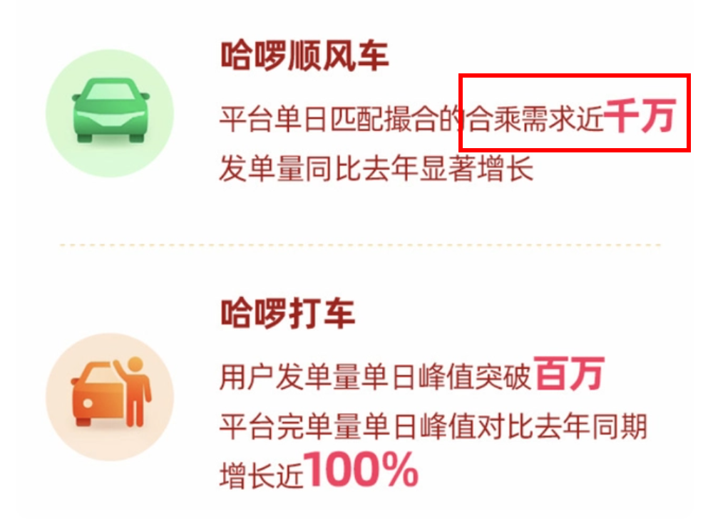 首先,哈啰看到了从单车衍生到网约车和公共交通的新机会,2018年9月,哈罗单车更名为哈啰出行,宣布上线网约车,并接入嘀嗒出租车和首汽约车。哈啰顺风车业务也于2019年上线。