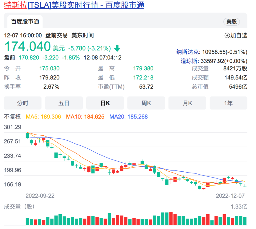 自10月马斯克完成对推特的收购以来,特斯拉股价已下跌近25%。同时,特斯拉销量也有所下滑。