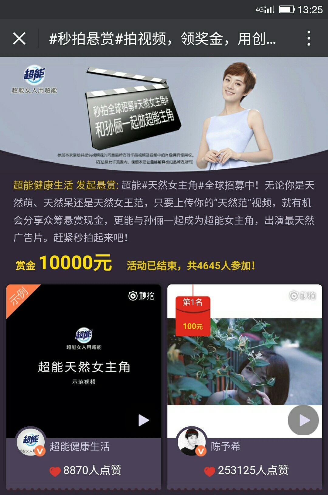 3、参与点超能“天然女主角”征集