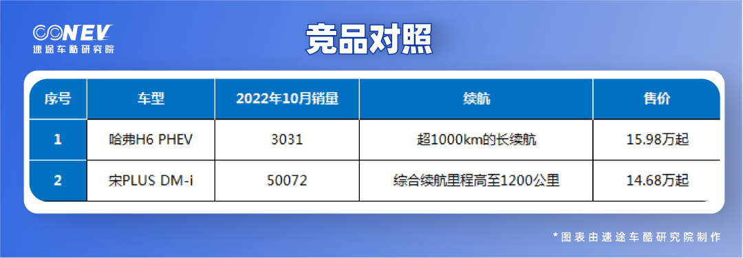 以重磅推出的哈弗H6 PHEV为例,该车与宋PLUS DM-i在售价、纯电续航里程等相仿,是直接竞争对手。