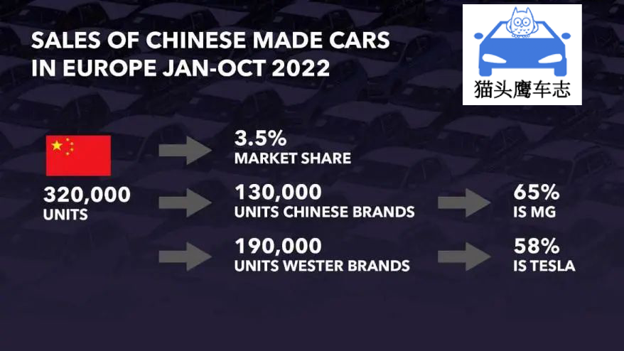 从JATO发布的今年1-10月的统计数据看,中国制造的乘用车在今年前10个月,一共在欧洲销售了大约32万辆,占据了大约3.5%的市场份额。