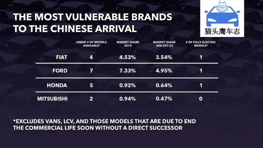 JATO分析认为,随着更多的中国汽车进入欧洲市场,并且产品让消费者越来越满意。那些产品范围过小、电气化明显落后的车企正在受罪。