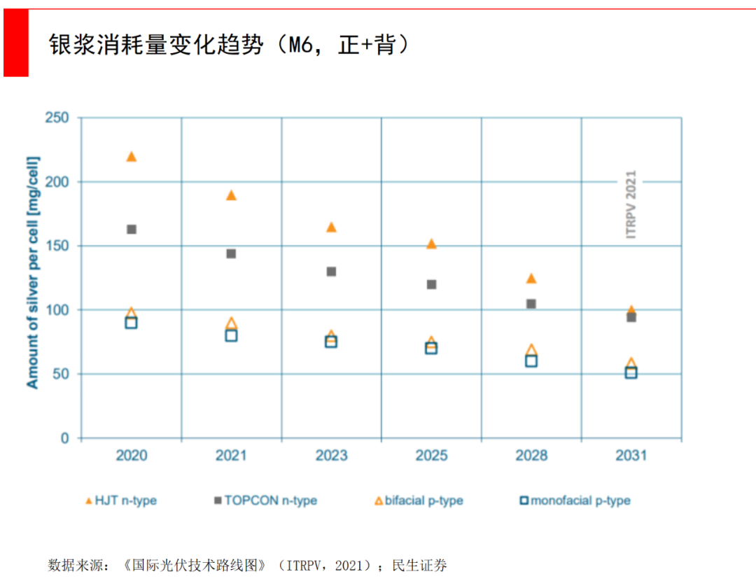 另一大降本路径是减少浆料,例如减少栅线的银浆用量等工艺改进,但这一点不是TOPCon独有的,与其他技术路径共享。