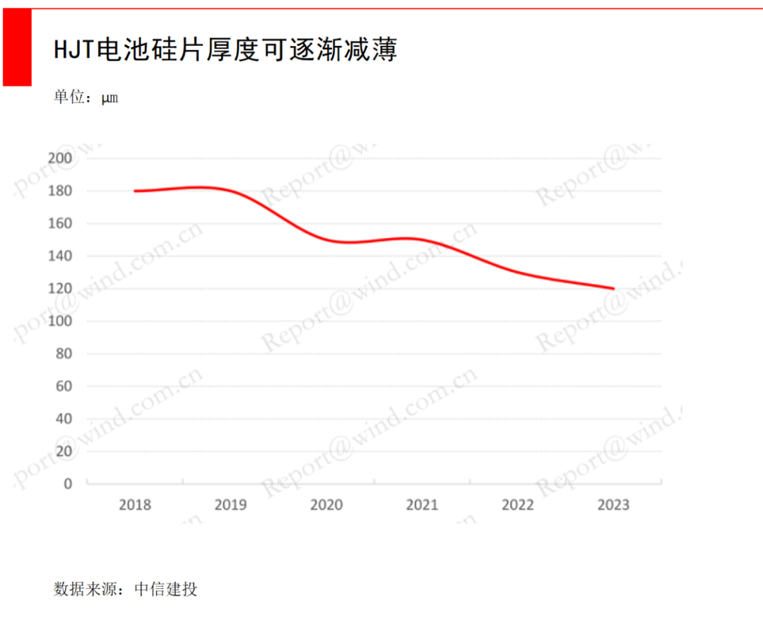 HJT的降本将主要围绕硅片切薄、降低银浆用量使用两方面展开。
