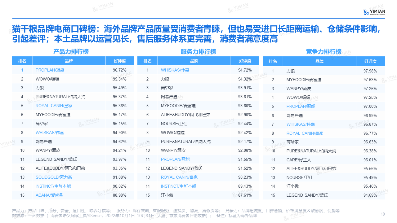 种种条件差异下,海外品牌的猫粮品质更好,似乎是不争的事实。从天猫大盘来看,排在销售榜前列的仍是海外品牌,体现了海外品牌对消费者心智的强势占领。