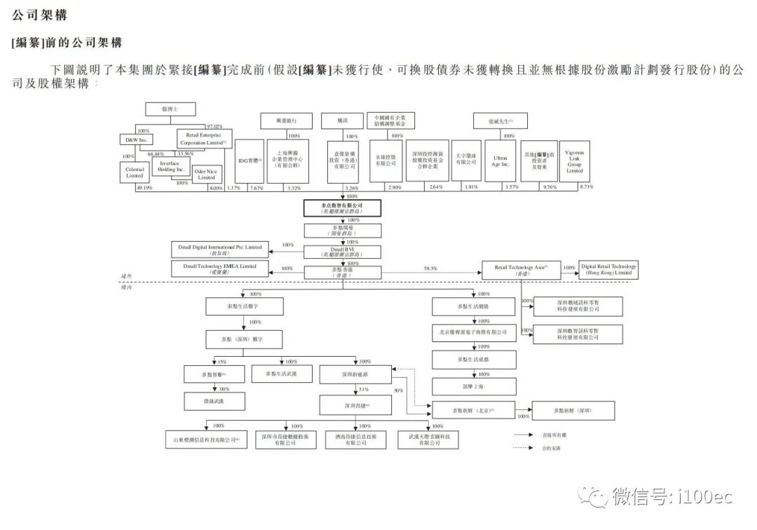 IPO前,CelestialLimited(由创始人张文中博士控制)持有多点DMALL已发行股份的49.19%;Odor Nice Limited(由创始人张博士控制)持有公司已发行股份的8%;Retail Enterprise Corporation Limited(由创始人张博士控制)持有公司已发行股份的1.17%。