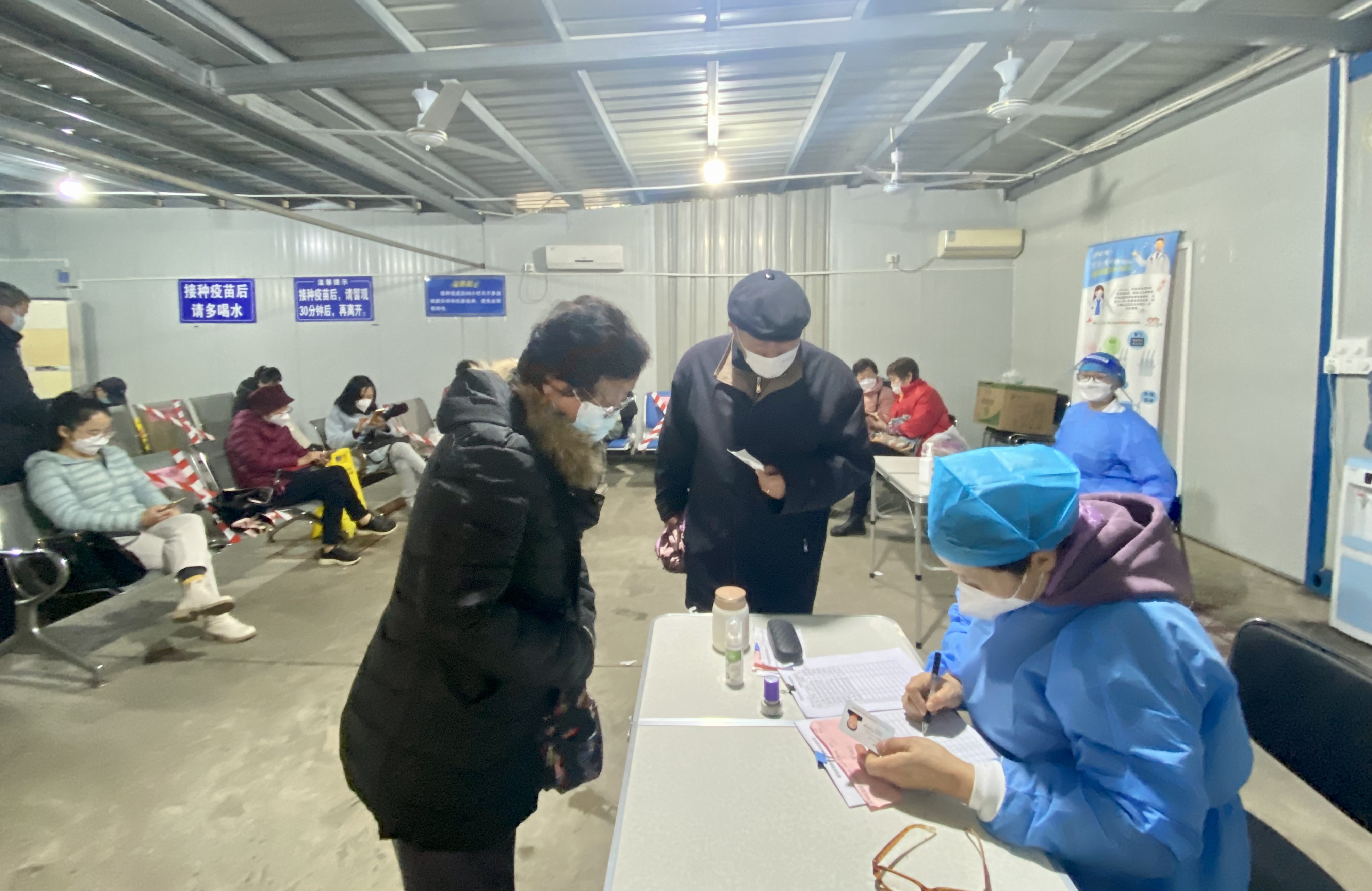 2022年12月9日中午,上海市杨浦区定海社区卫生服务中心陆续迎来预约接种吸入式疫苗的居民。