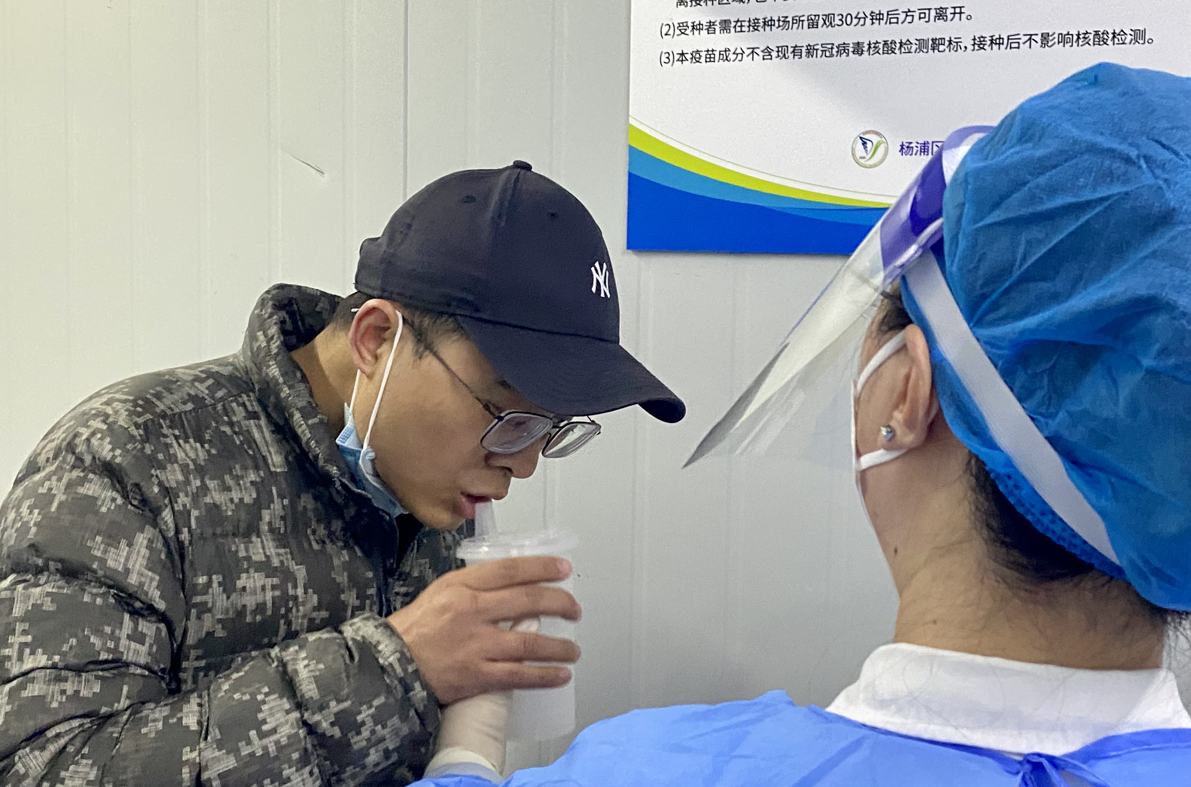 在附近工作的闫鼎告诉界面新闻,自己已接种两剂次灭活疫苗满六个月,正好看到新闻上说可以预约吸入式加强免疫,就想来体验一下。