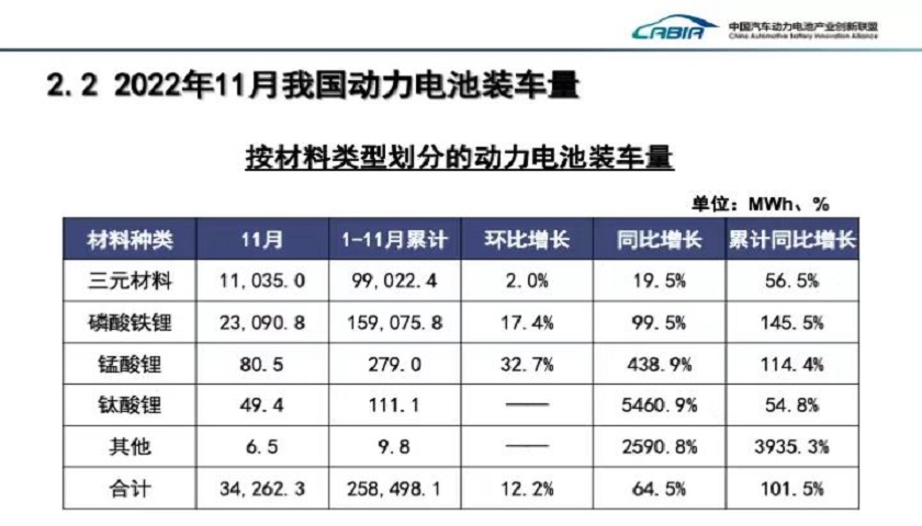 今年1-11月,国内动力电池装车量共计258.5 GWh,相较去年同期呈翻倍式增长。其中,磷酸铁锂装车量达159 GWh,市占率逾六成,三元电池占比则不到四成。