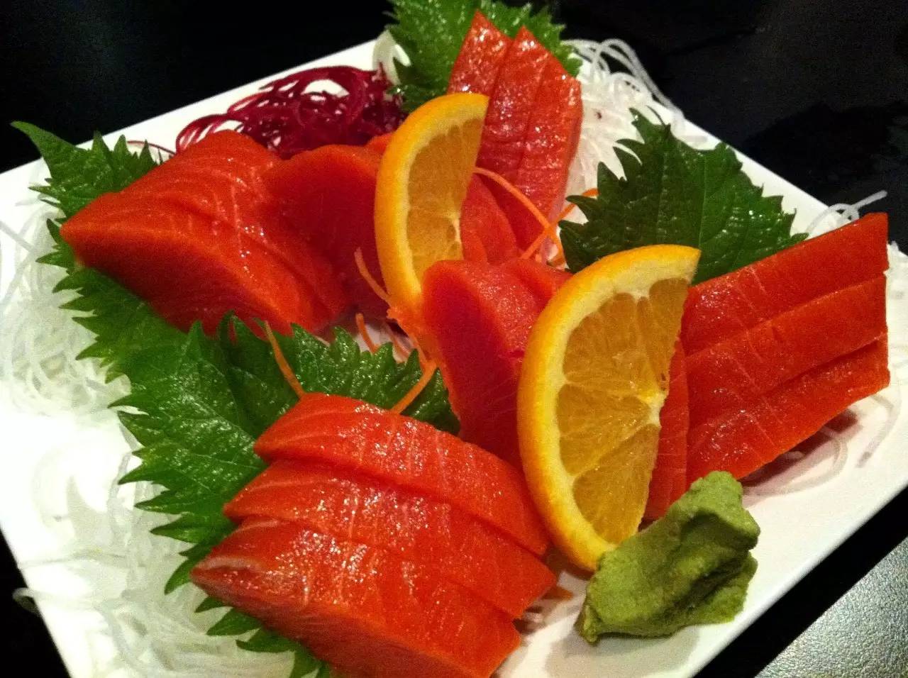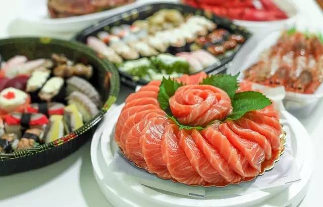 在国内,评价一间自助餐厅够不够高档,最基本的标准就是看有没有三文鱼刺身,通常还限量,每个人只能拿两盘之类的,而且每一片三文鱼都切的薄薄的。