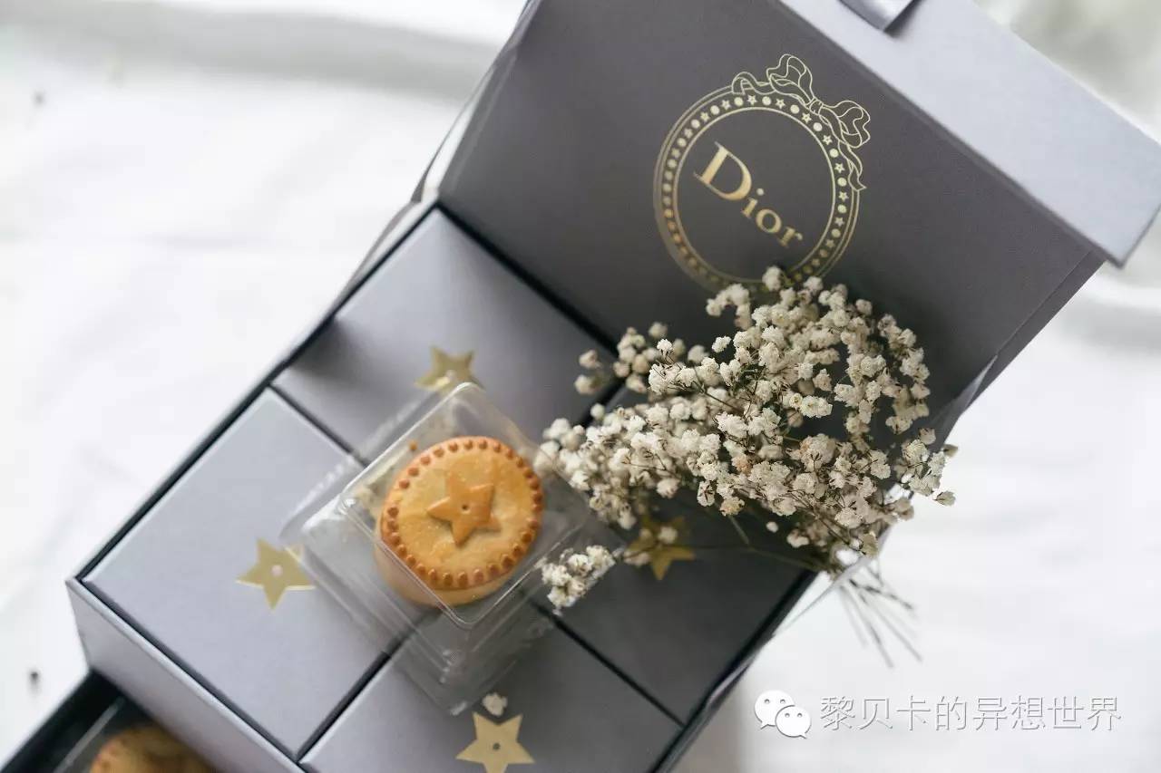 月饼上印有的五角星,是Dior品牌中的一个经典标识。当年迪奥先生还在犹豫要不要创立自己品牌的时候,就因为在路上被一颗星形的石头绊了一下,才下定了决心。所以这个五角星被当做是幸运星,在Dior的一些珠宝设计里也有运用到。▼