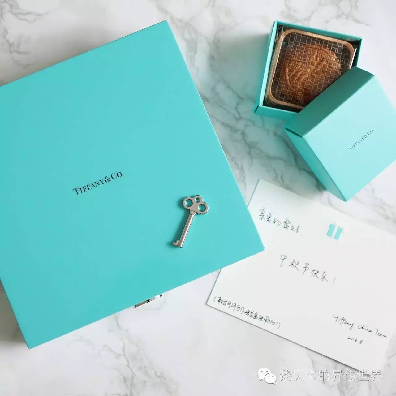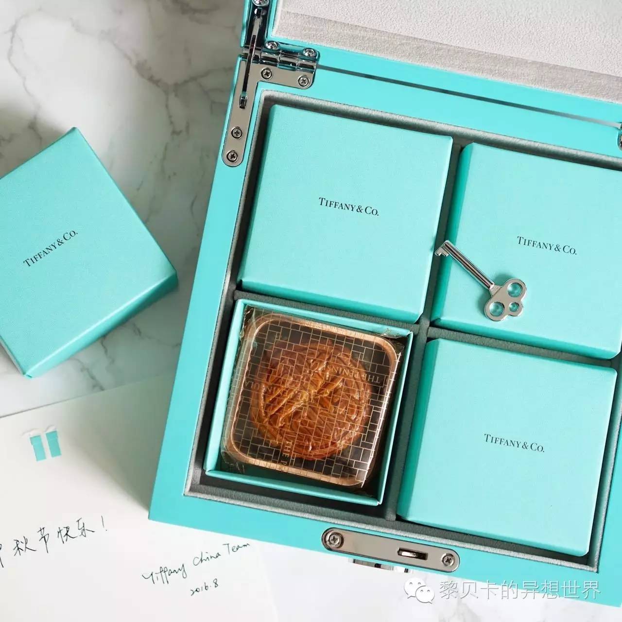 美貌度满分,Tiffany还贴心地告诉我月饼吃完了,盒子可以拿来做首饰盒。所以还配有一把小钥匙,真的能锁上哦。然后助理小妞JOY就一直谜之微笑地看着我,这目光暗含什么,我看不懂~