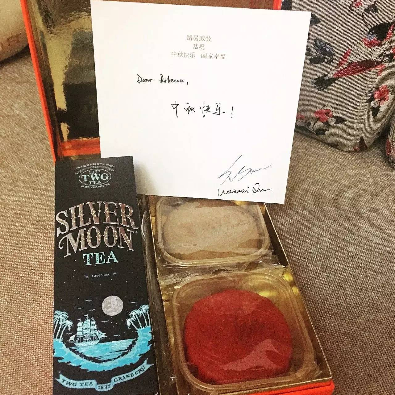 相比起其他大牌,Louis Vuitton的月饼好低调,除了卡片外,上面没有任何它家的LOGO。她们寄的是TWG TEA的月饼礼盒。▼