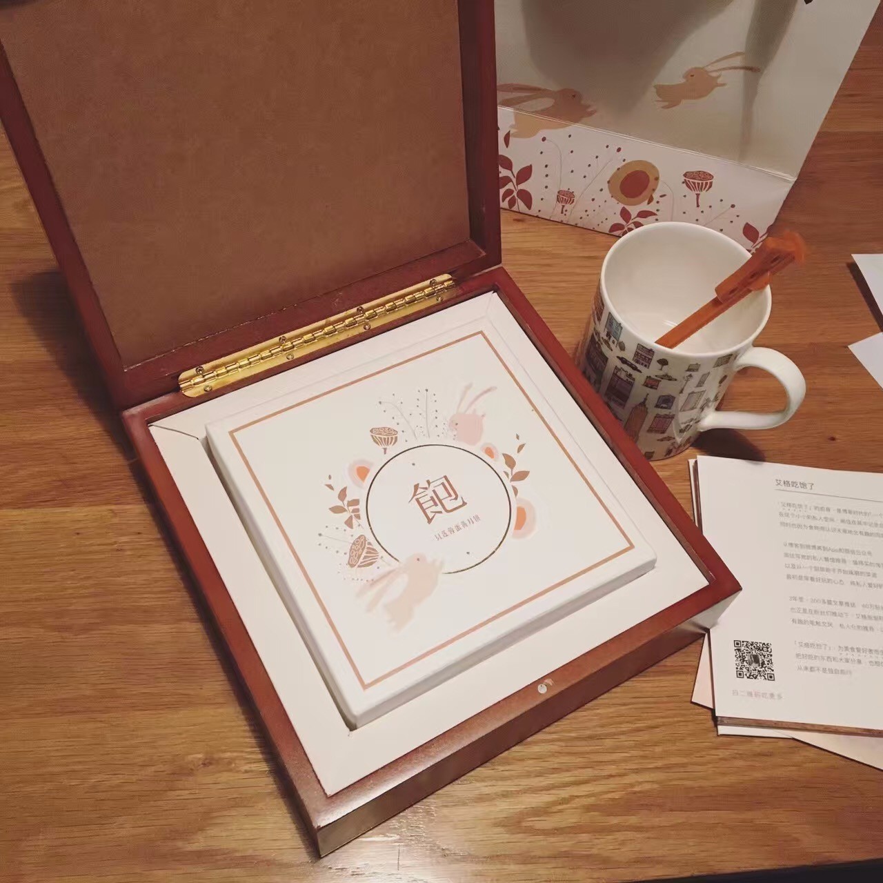 里面除了月饼,还附赠了两只很可爱的叉子。因为是刚收到的,我还没来得及拆开吃,照片也是手机现照的。▼