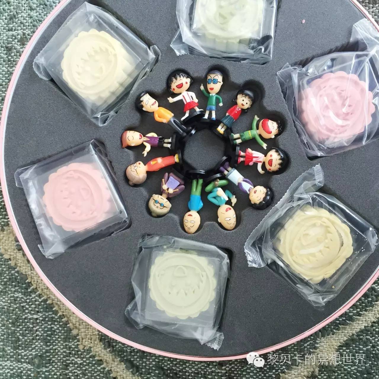 打开盖子时又是一片惊呼,因为里面居然有一整套的小丸子主角们的迷你摆件~趁我出差在外,助理小妞们就把这十几只摆件瓜分完了,还在朋友圈发起了摄影大赛!