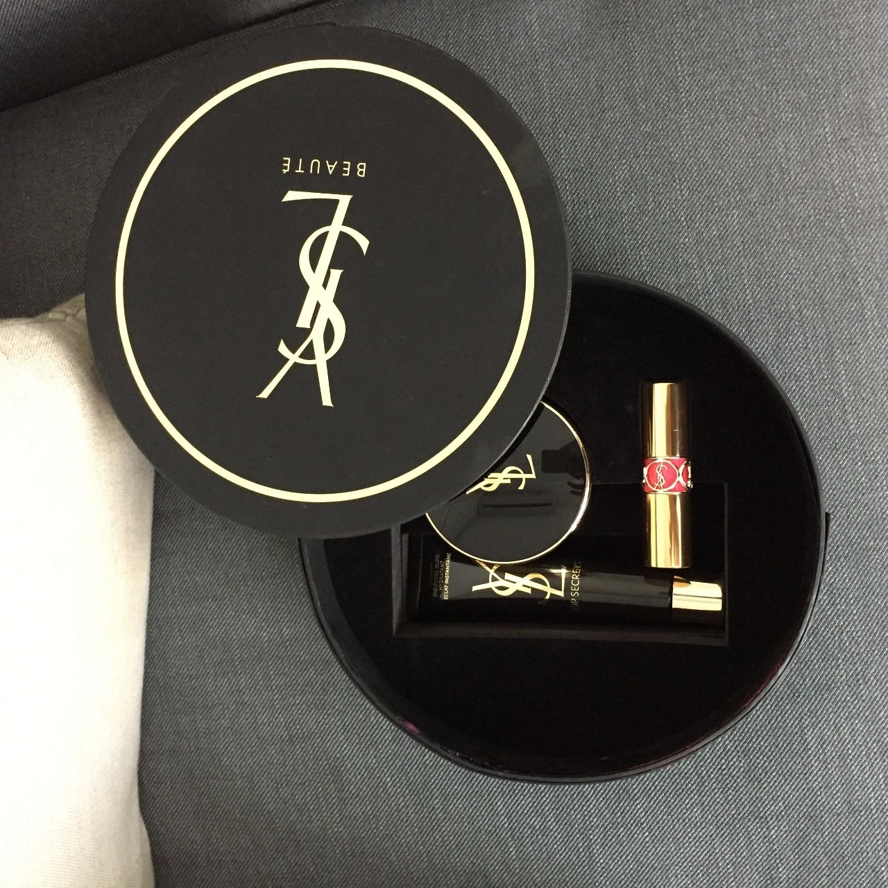 YSL送了我一个七夕礼盒,不过口红不知道为啥寄来时已经断了,气垫bb被我迫不及待用了,就把里面的妆前乳送给大家,这个我自己也在用,蛮好用的:)▼